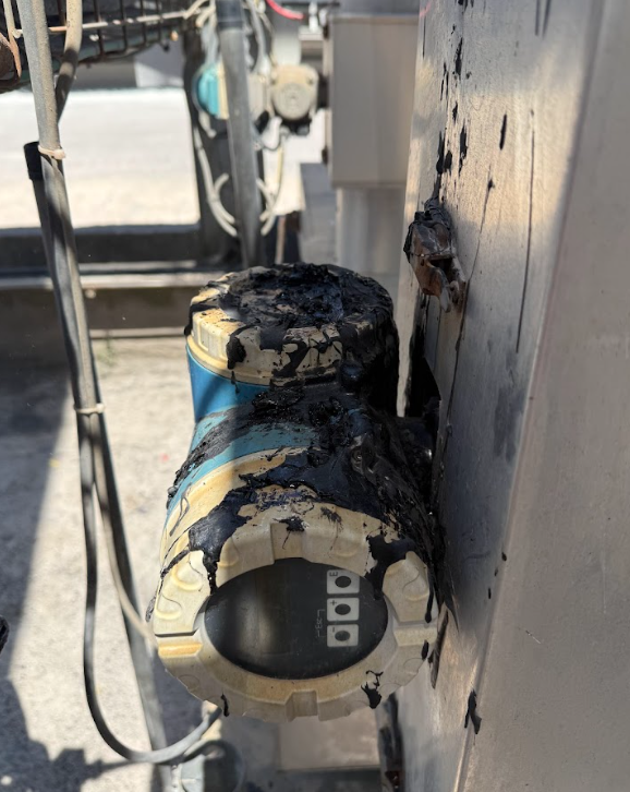Comme le montrent les photos avant/après, plusieurs zones étaient particulièrement touchées : gaines électriques, sondes de mesure, boîtiers techniques, et parois métalliques. Le nettoyage cryogénique a permis un dégraissage précis et sans abrasion, même sur les surfaces plastiques sensibles, comme les capteurs électroniques (photo 1).